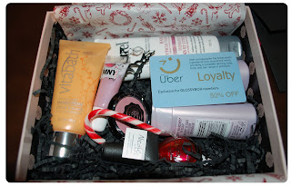| With our gift bags, we each received the Holiday GlossyBox (November's box) |